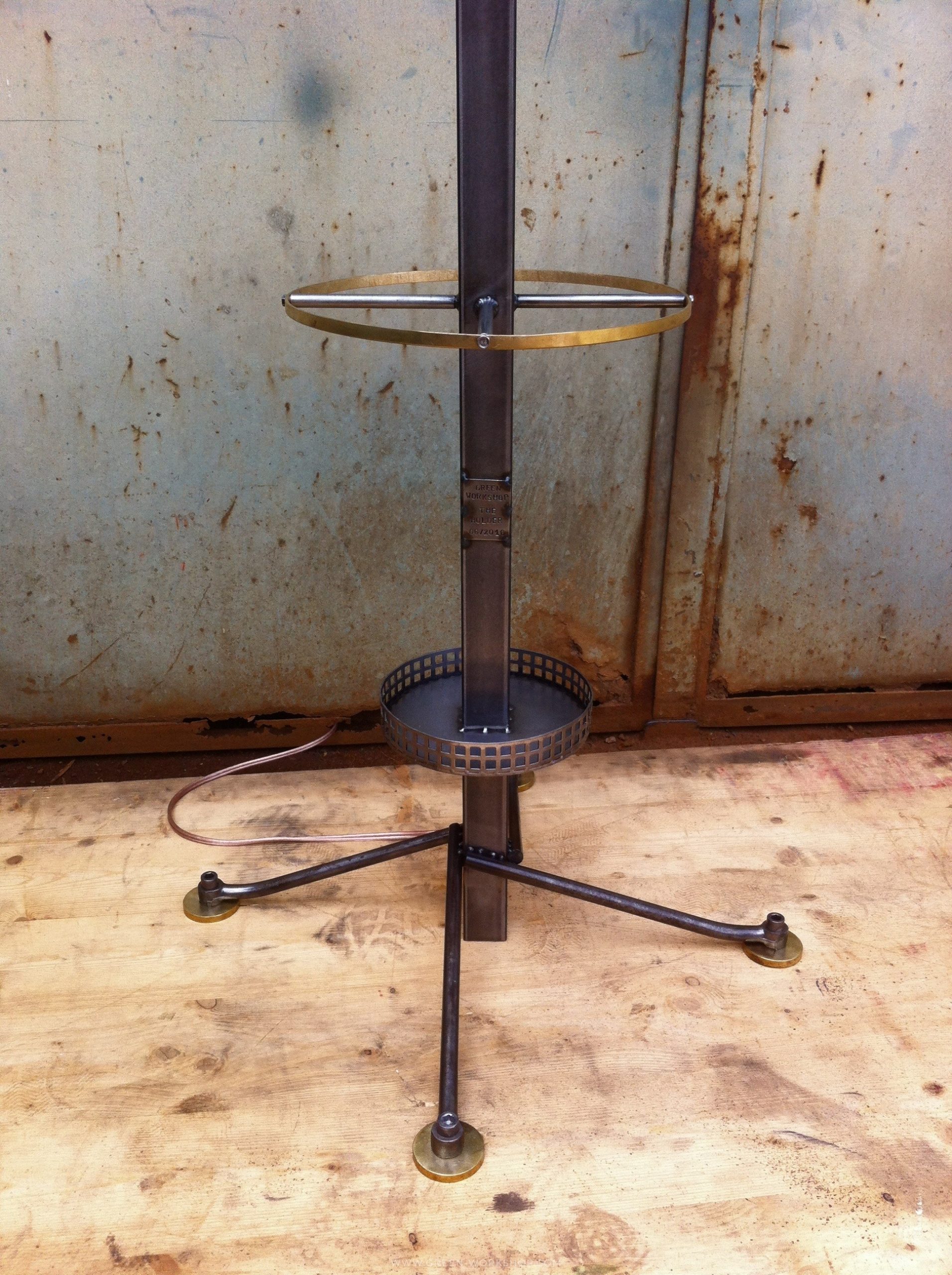 Une lampe d’acier et Laiton d’inspiration Steam Punk imaginée sur la base d’un vase d’expansion d’une vielle auto. Une fois coupé en deux, il sert de base aux deux optiques …